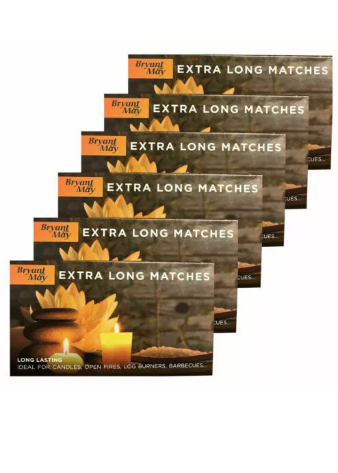 Light fires, candles, or stoves safely and easily with these extra-long Bryant & May matches. Their extended length keeps your fingers safely away from flames, making them perfect for fireplaces, wood stoves, barbecues, and campfires. Made with high-quality materials, they ignite reliably and burn steadily, giving you the control and convenience you need every time.